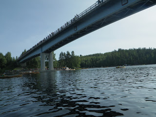 Vierellä meloneiden yksin- ja vuorosoutajien kanssa tuli myös vaihdettua kuulumisia. Monesko kerta? Mistä tulette? Miten menee? Moni soutaja hämmästeli kanoottimme vauhtia. Oli syytäkin, lopulta jopa yksi tuntia ennen meitä lähtenyt kirkkovene jäi taaksemme, pienemmistä veneistä ohitimme useita.