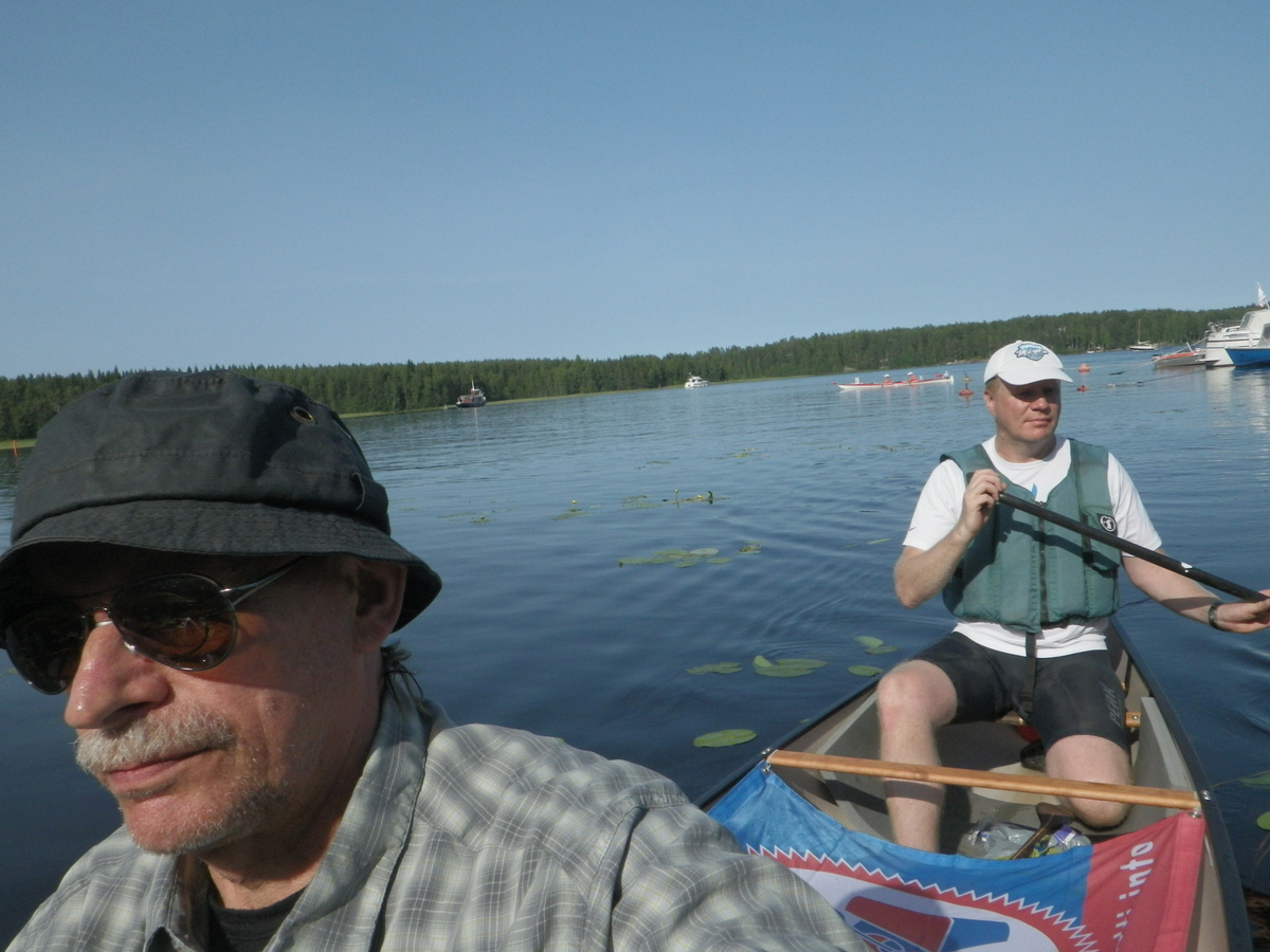 Jyrkin ja Markon venekunta otti alusta asti rauhallisemmin kuin me. Emme nähneet heitä lähdön jälkeen. Kisasimme melojien kakkossijasta kajakkikaksikon kanssa, jota meloivat Mervi Auvinen ja Aili Laukkanen Parikkalan latupiioista ja pojista. Emme saavuttaneet heitä suorassa nopeudessa, mutta eivät hekään päässet meitä karkuun.