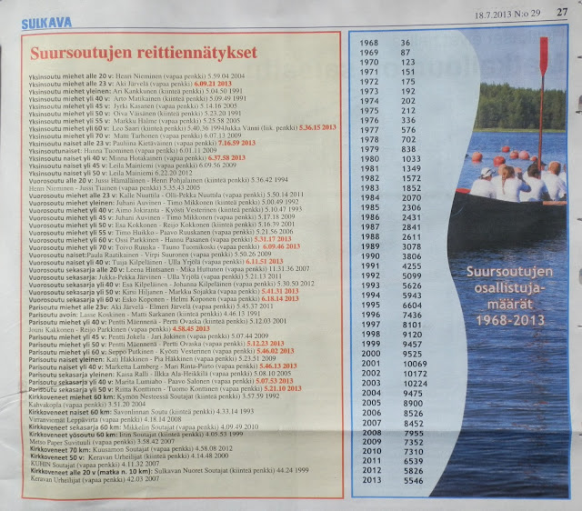 | Tulostiedotusta ála Sulkava. Porukkamme löytyi Erikoisveneiden alta, toi Kanootit ja Kajakit oli vaan hämäystä. Omat tietomme jäivät tästä listasta pois. |