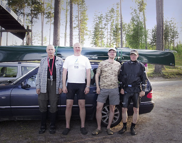 Meloimme Avokanoottiyhdistyksen nimissä, Janne Janhunen, Jyrki Uotila, Marko Pikkarainen ja minä.
