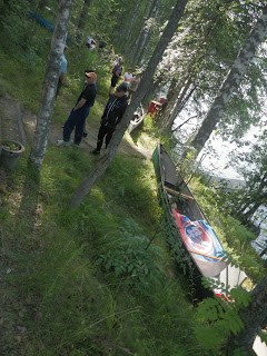 Tulimme kisapaikalle hyvissä ajoin perjantaina ja saimme telttapaikat läheltä rantaa. Lauantain starttipaikalle oli matkaa parisataa metriä. Saisimme kanootit vesille suoraan leiripaikan rannasta emmekä joutuisi hässäköimään sadan muun vesillelaskijan kanssa.