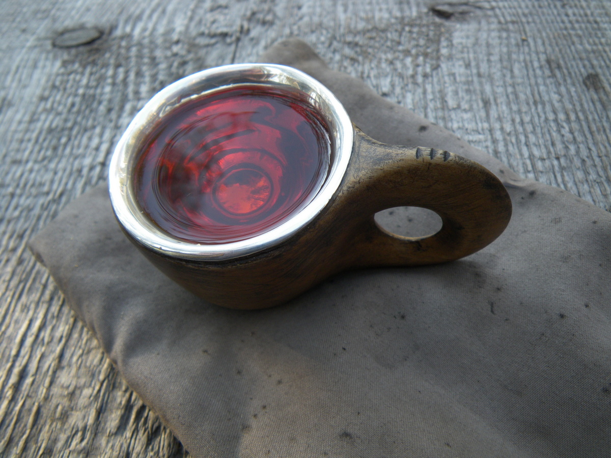 Desilitran pikkukuksan olen itse paivertanut koivunpahkasta. Viskikuksa on Jongunjoen Nurmijävellä asuvan kuksamestarin pieni leppäkuksa, johon teetin hopeisen sisuksen ystävälläni, kultaseppä Keijo Raitasella. |