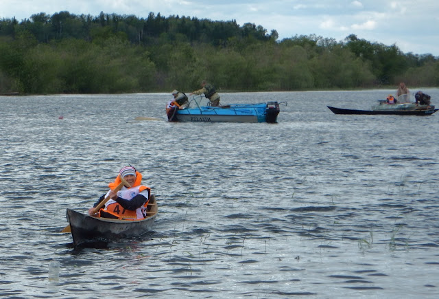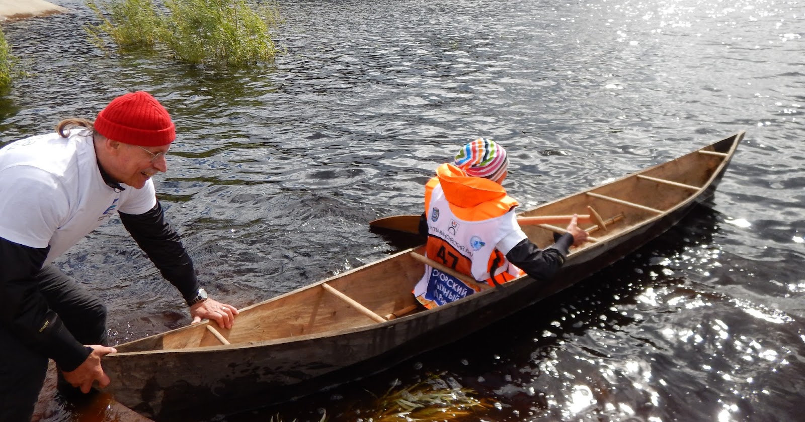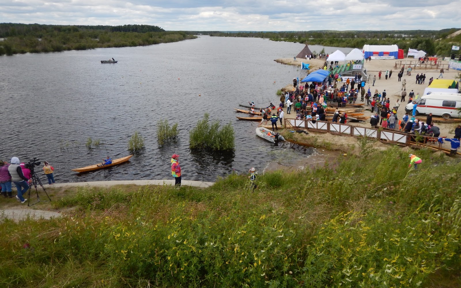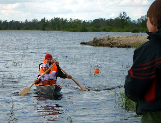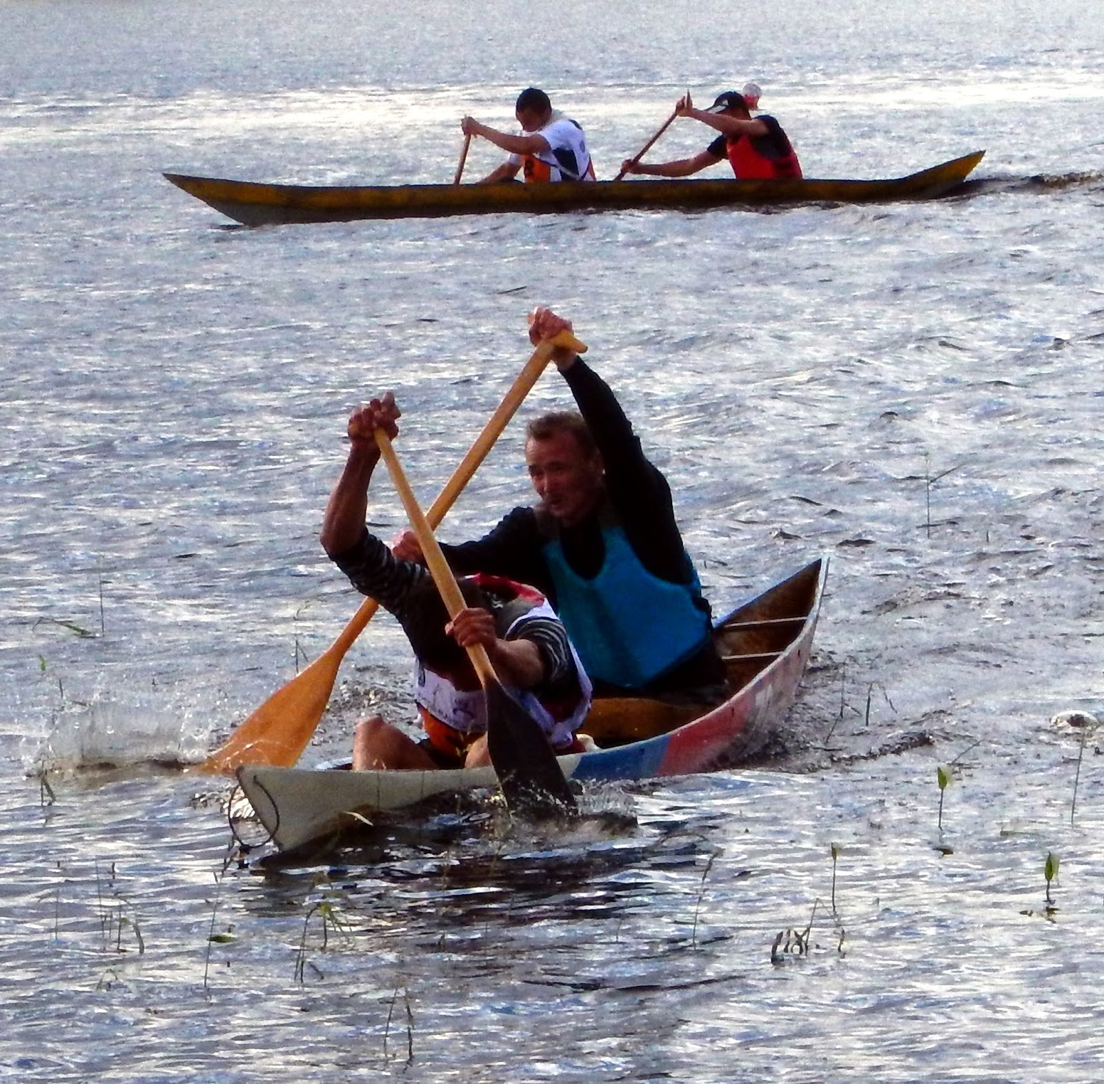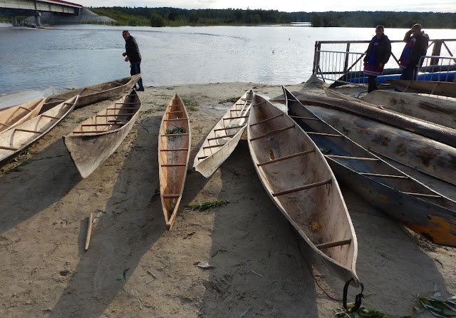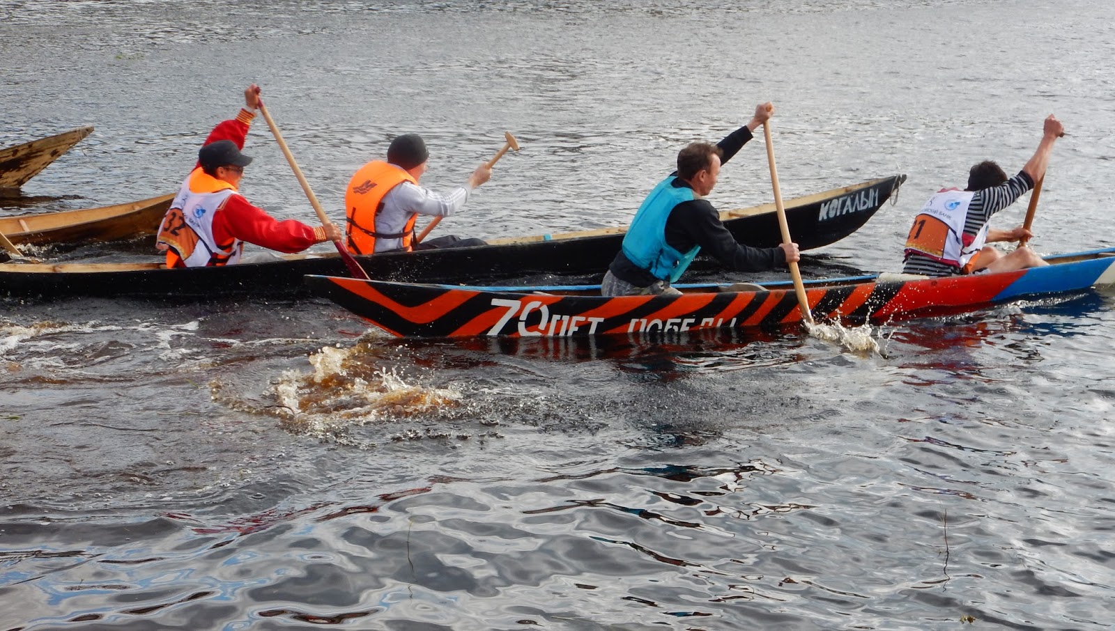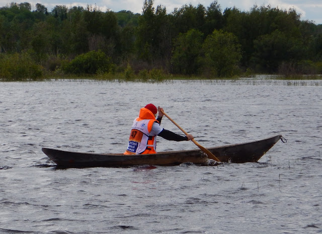Raceing with traditional Hanti-Mansi dug-out canoes.
