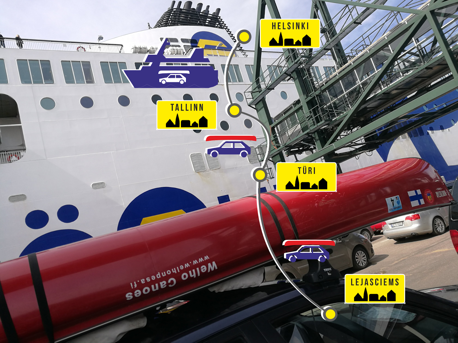 | Last minute adjustments for our canoe and then the car battery died. Hotel Veskisilla is my favourite in Turi. Breakfast room is roomy enough to have our egos inside too. |