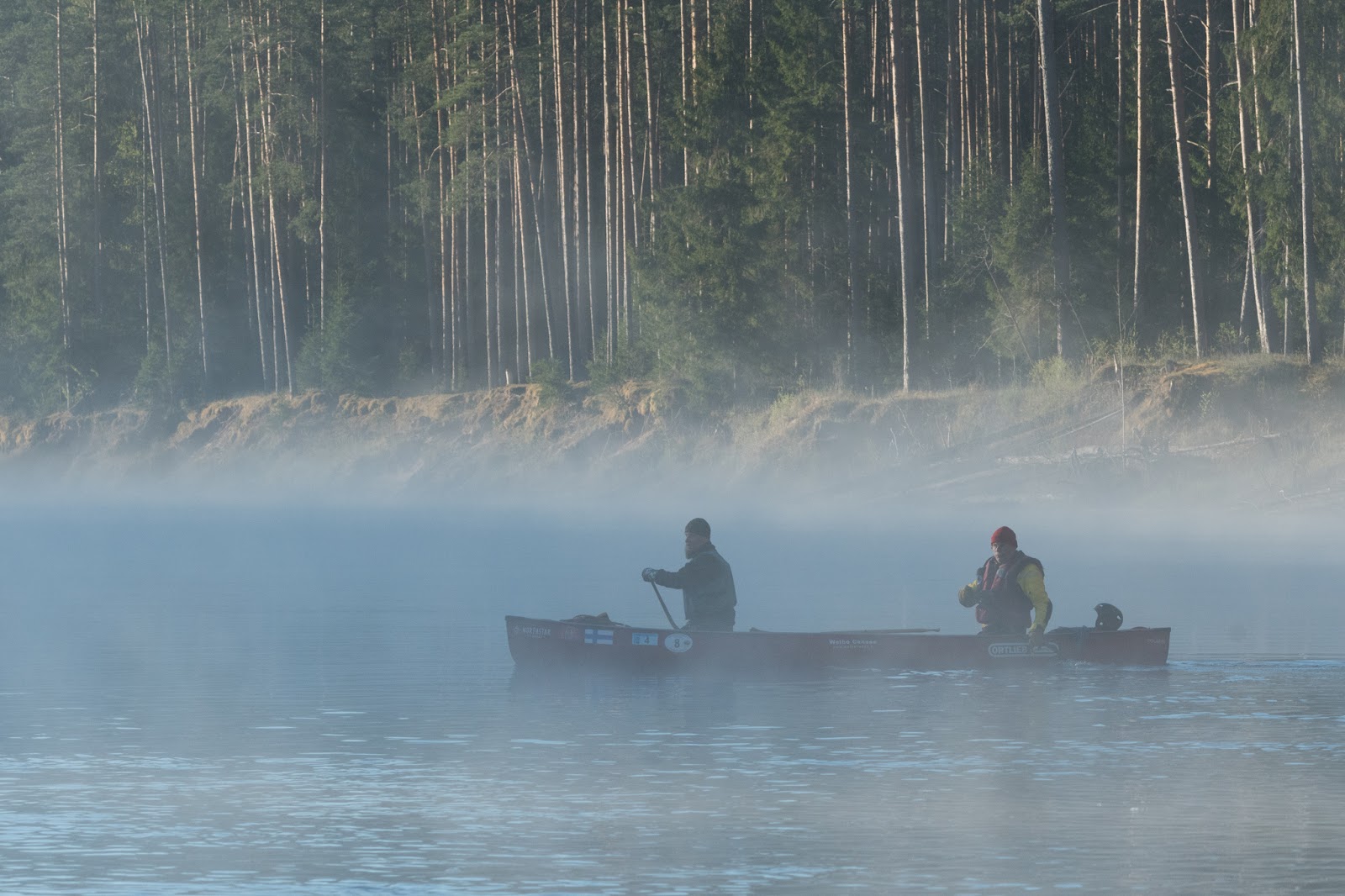 | Jaakko Helsingistä ja Sampo Lohjalta. Olemme meloneet kanoottikaksikolla näitä pitkiä matkoja muutaman vuoden. Tavoitteemme on päästä kunnialla perille ja tehdä hauskoja reissuja. |
