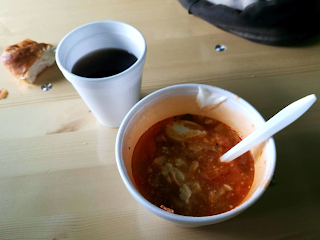 | At Kurgia lunch. Soup and black tea. 48 km to go! |